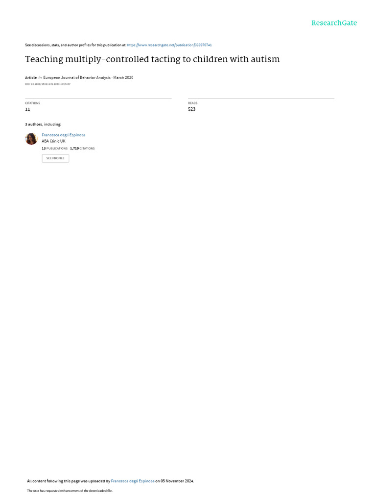 Teaching Tacting Skills to Autistic Children | PDF | Reinforcement ...