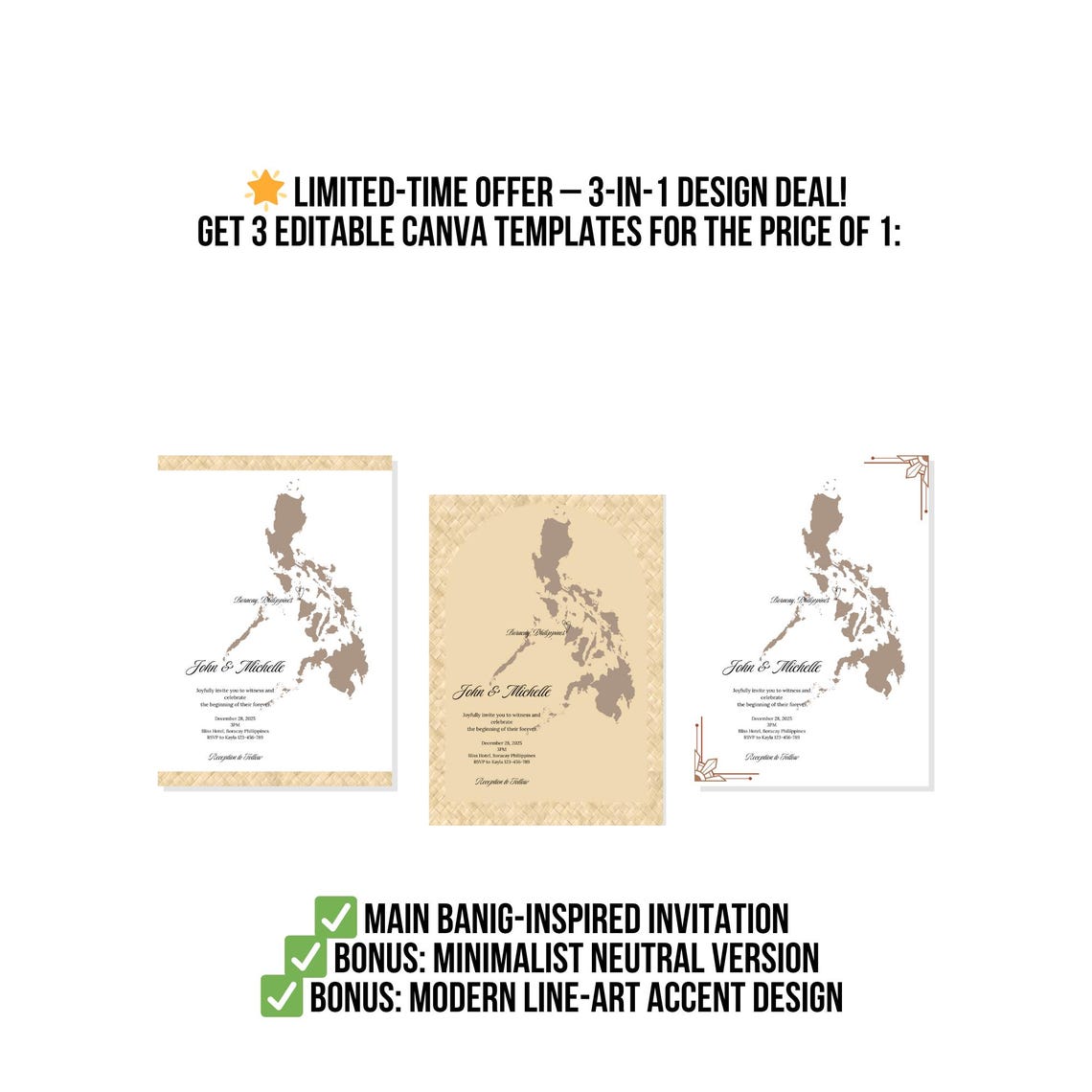 Filipino Invitation Template | Banig & Map Design | Editable Canva ...
