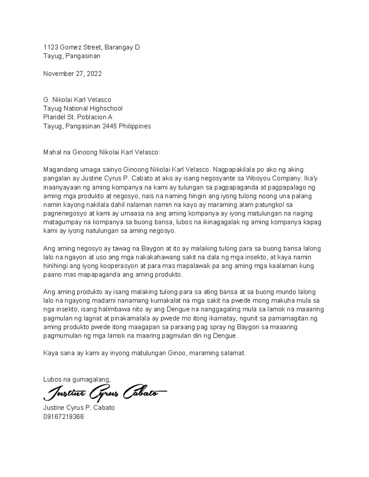 Business Letter Example Tagalog at Rachel Hanrahan blog