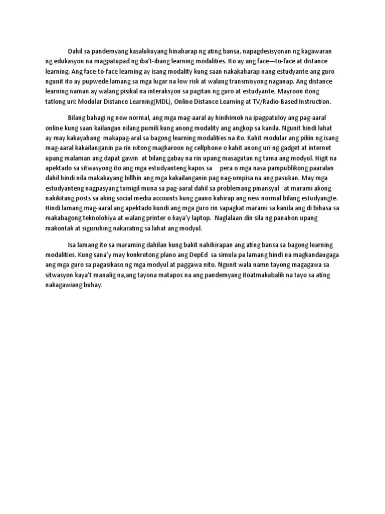 SOLUTION: Filipino Position Paper and Essay - Studypool