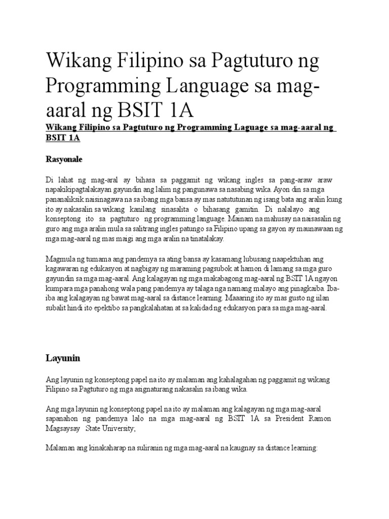 Wikang Filipino Sa Pagtuturo NG Programming Language Sa Mag-Aaral NG ...