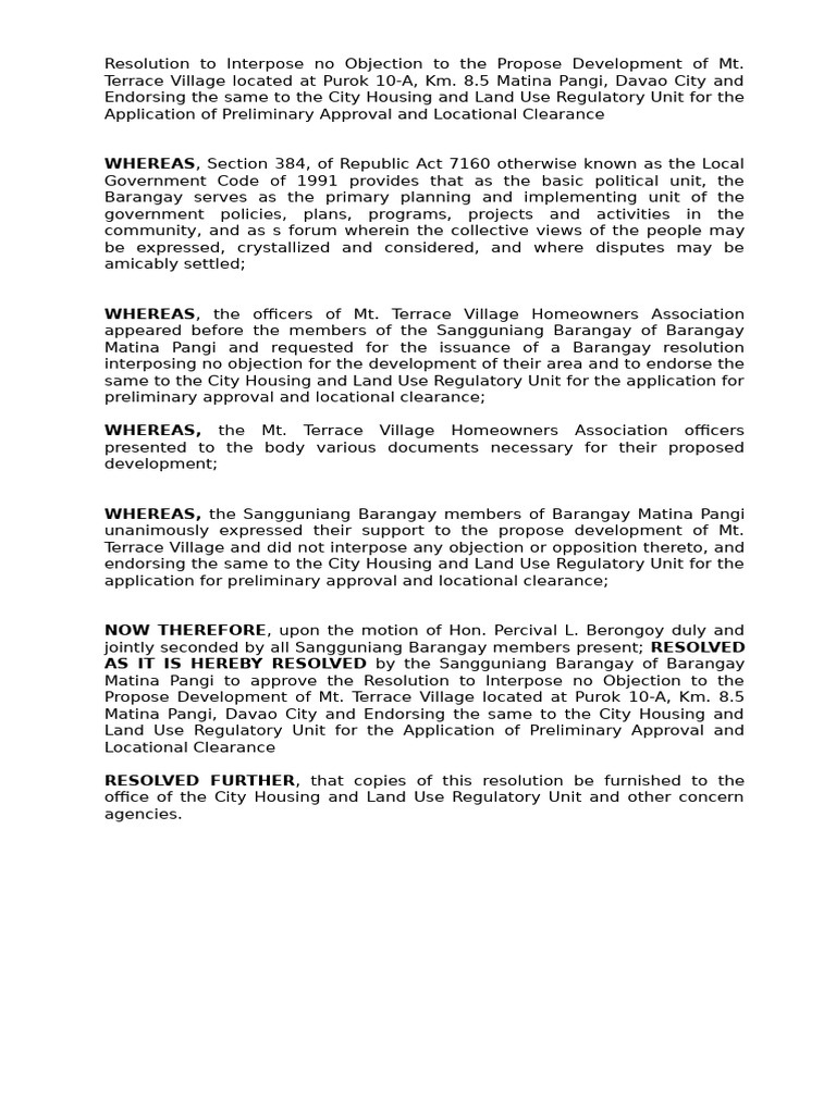 Resolution - Republic of the Philippines BARANGAY CALINGNAN ...