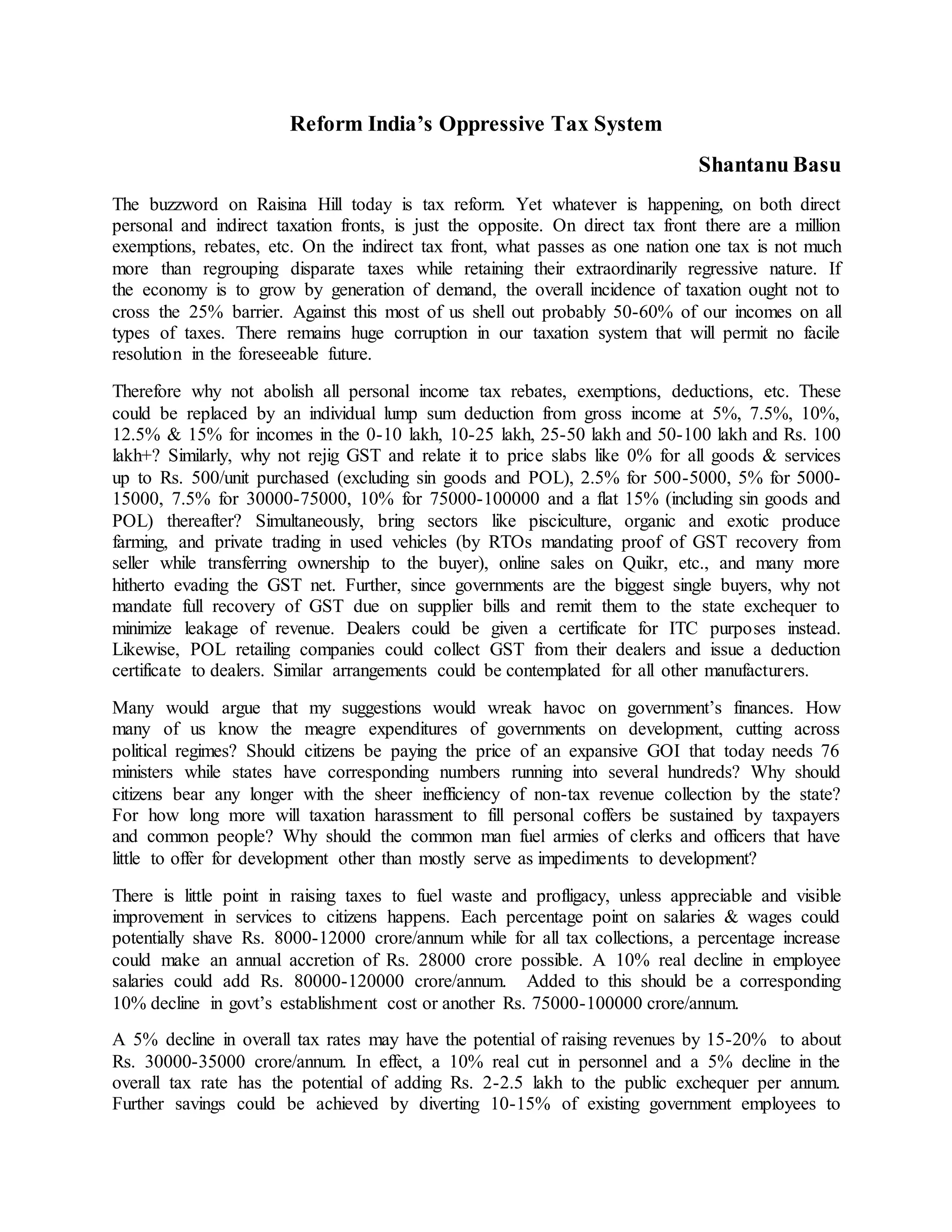 Reform India's Oppressive Tax Regime | DOCX