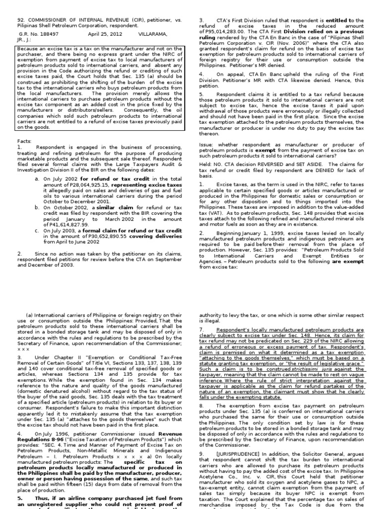 94 CIR v. Shell | PDF | Excise | Taxation