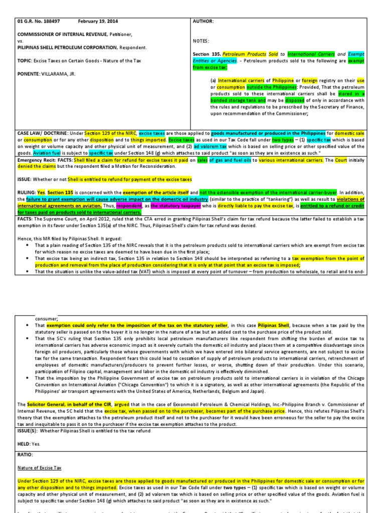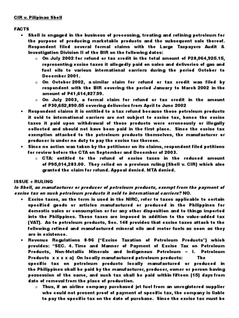 Digests. Tax. CIR Vs Saul CIR Vs Pilipinas Shell | PDF | Excise | Taxation