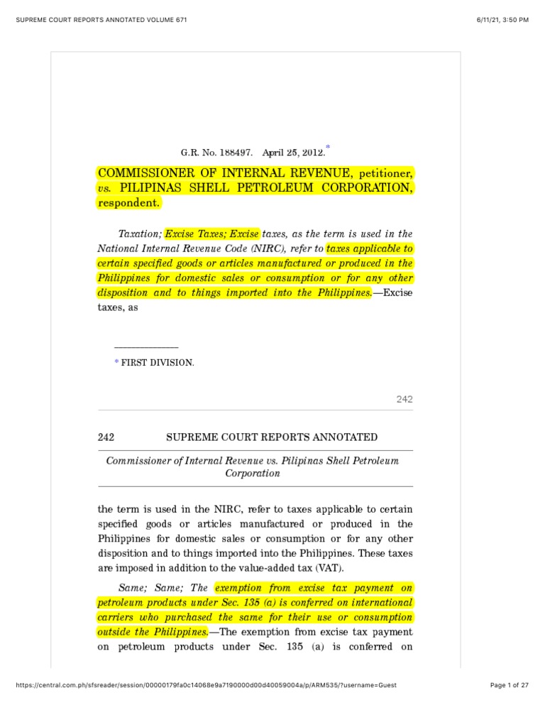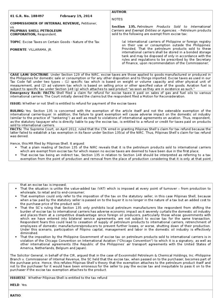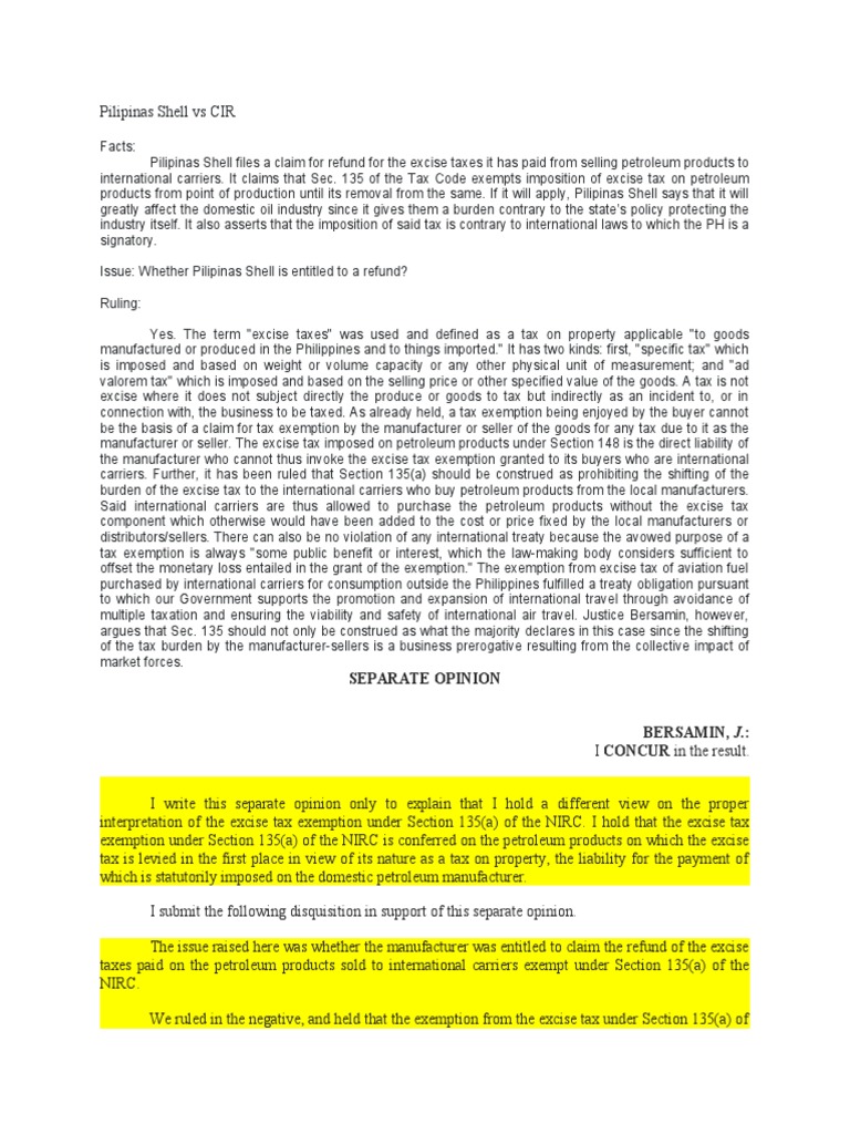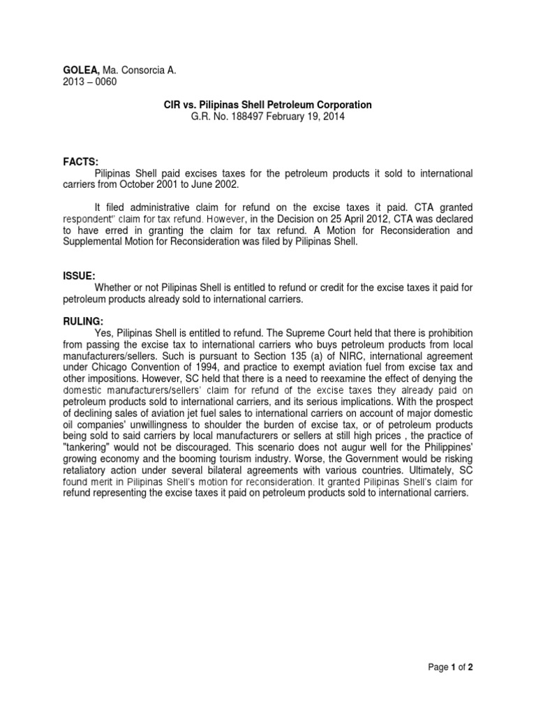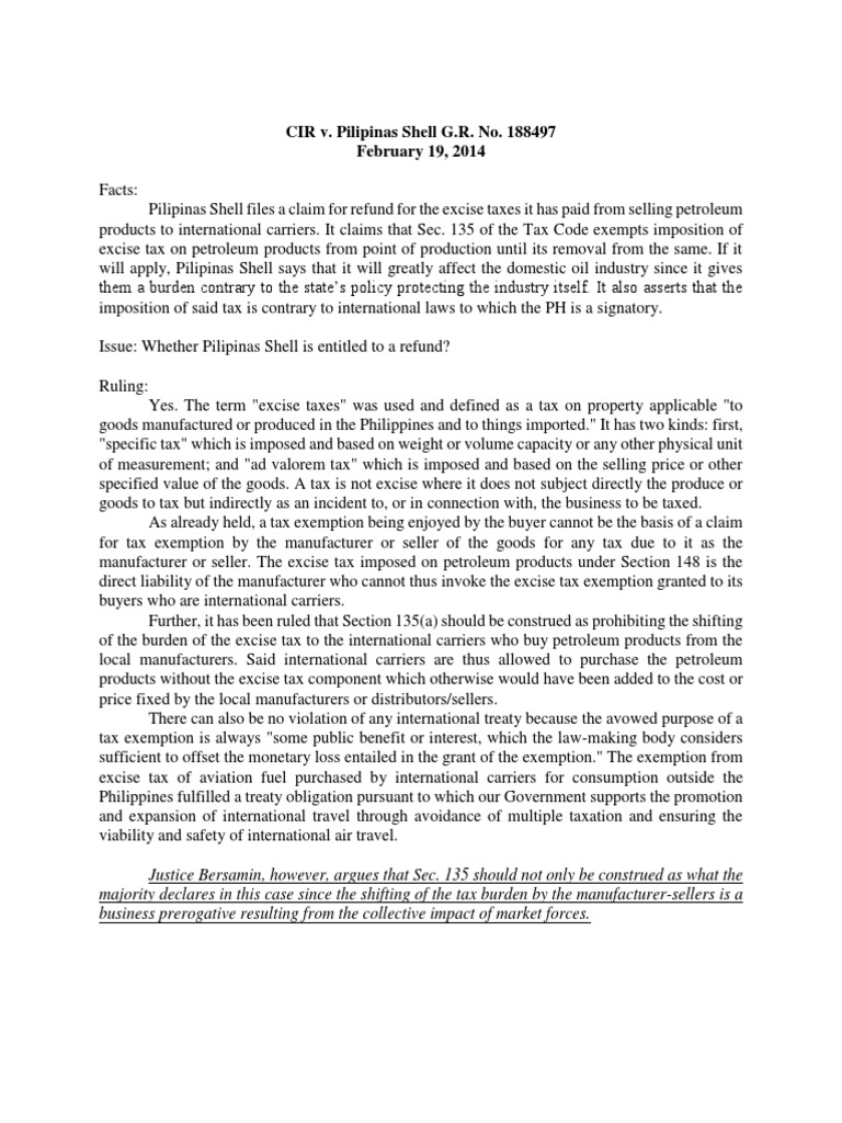 CIR V Pilipinas Shell | PDF | Excise | Taxation