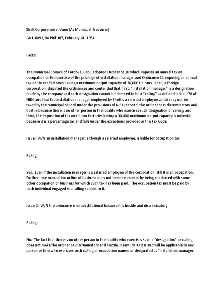 Shell Corporation Vs Vano Digest | PDF | Corporations | Taxation In The ...