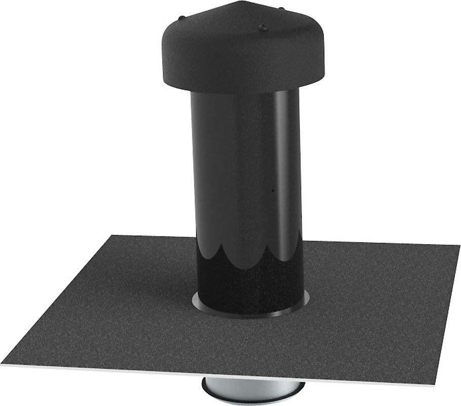 Ventilationshætte Ø125, sort med integreret tagpap, isoleret 50 mm ...