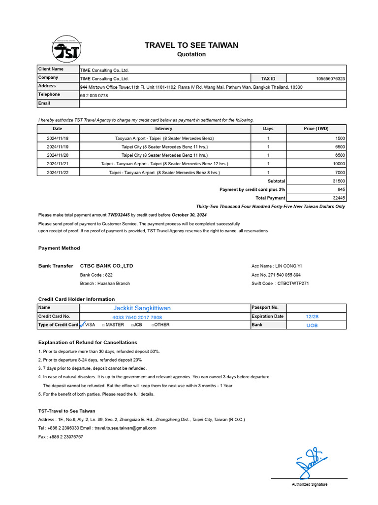 Taiwan Travel Booking Invoice | PDF | Credit Card | Payments