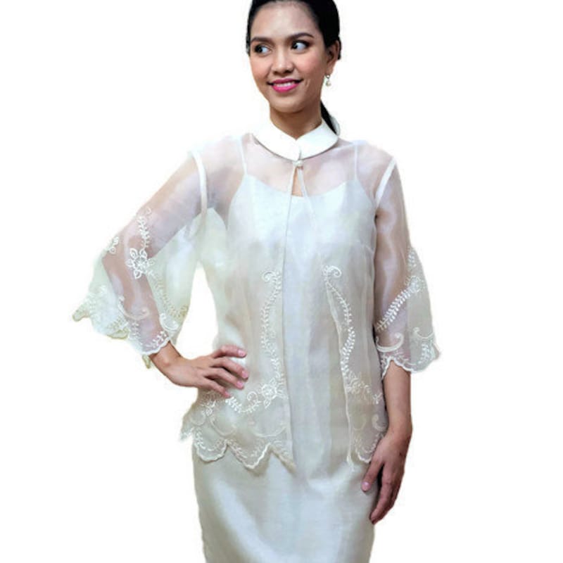 Modern Filipino Outfit - Silk Cocoon with Puff Sleeves Terno Top ...