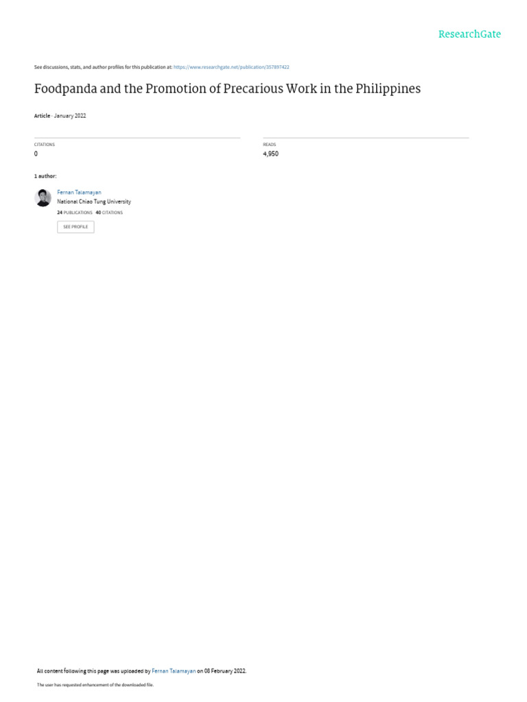 Talamayan 2022 FoodpandaandthePromotionofPrecariousWork | PDF ...