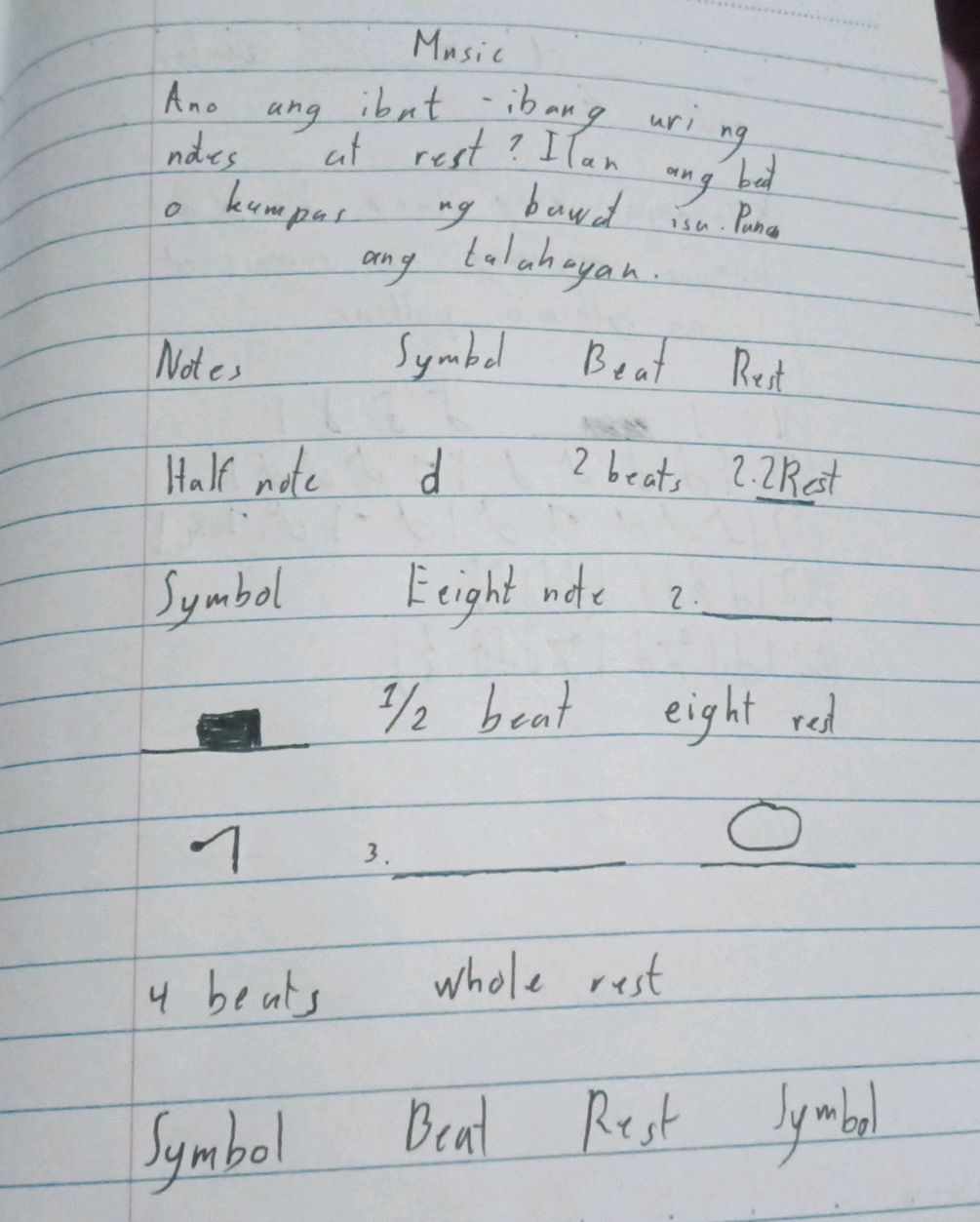 Ano ang ibat-ibang uri ng notes at rest? | StudyX