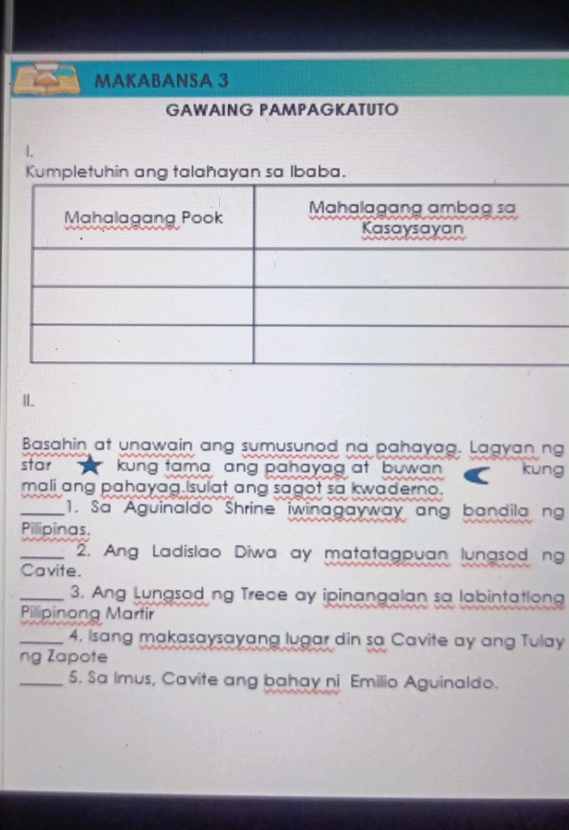 Panuto:Sa tulong ng mga impormasyong natutunan,sagutan ang talahayan ng ...