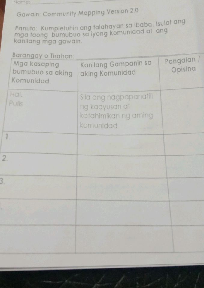 Panuto: Punan ng tamang impormasyon ang talahayan. Isulat ang ...