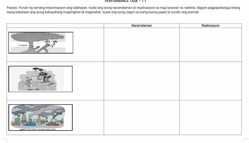 PANUTO: Sa isang papel,gumawa ng isang talahayan gaya ng nasa ibaba at ...