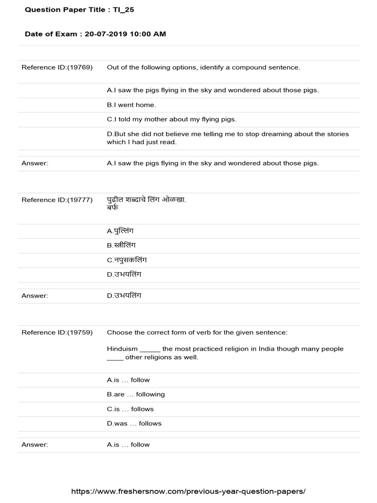 | Maharashtra Talathi Bharti Question Paper | 2020 Talathi Bharti ...