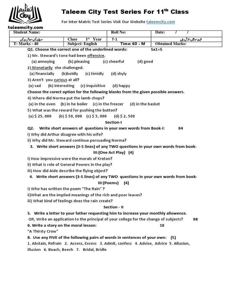 Taleem City - 10th Class English MCQs from past papers | Facebook