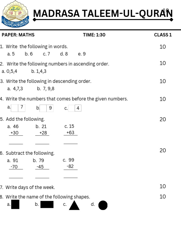 MADRASA TALEEM-UL-QURAN Class 1 | PDF