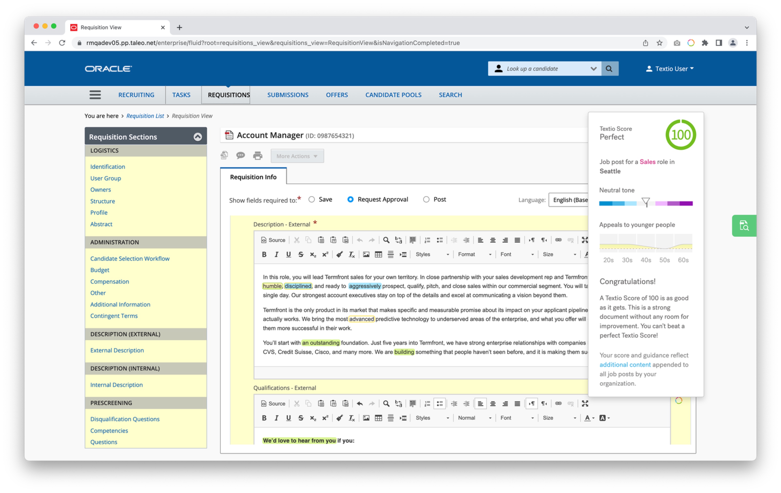 Oracle Taleo Integration - Testlify, Inc. Help Center