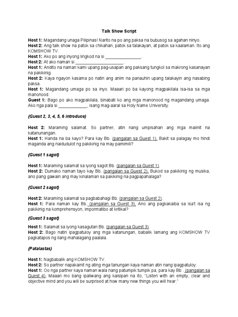 422424126-Talkshow-Script - TALKSHOW SCRIPT Hosts: Charmaine, Maritony ...