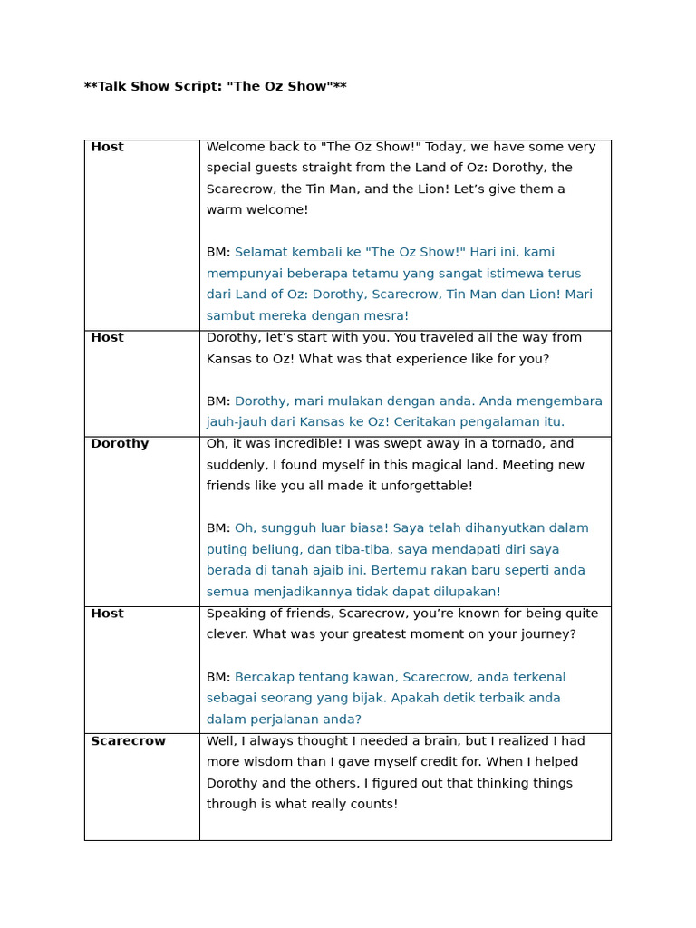 Free Talk Show Script For Students Template to Edit Online