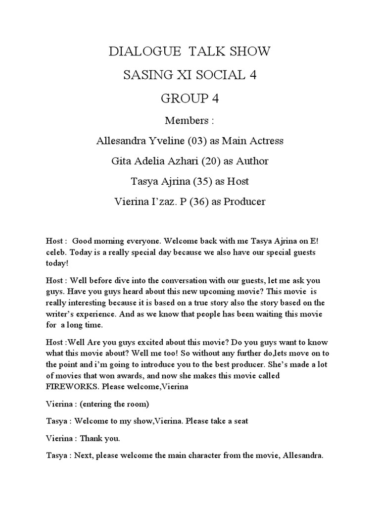Script For Talk Show | PDF