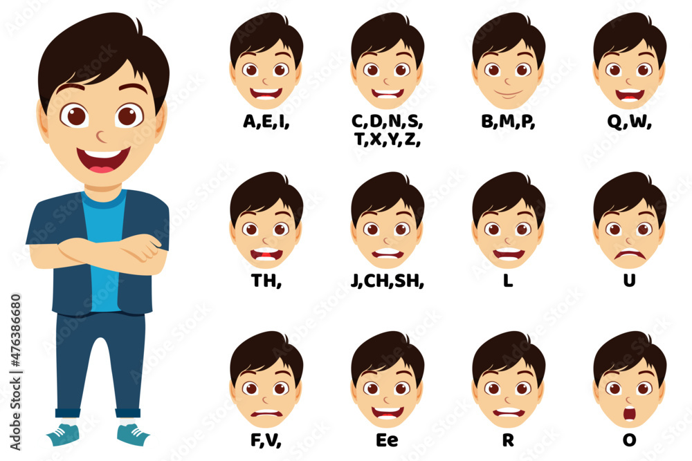 Cute cartoon kid boy character talking mouth and lips expressions ...