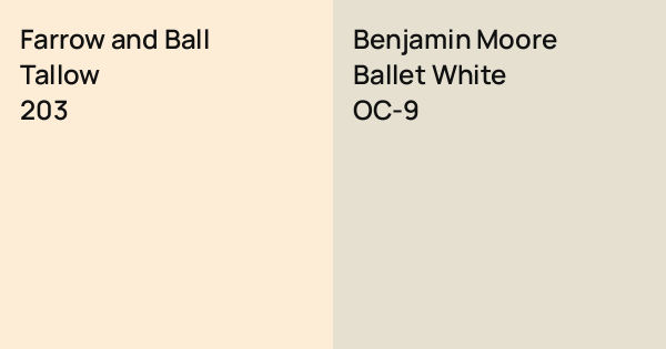 Farrow and Ball Tallow vs. Benjamin Moore Ballet White comparison