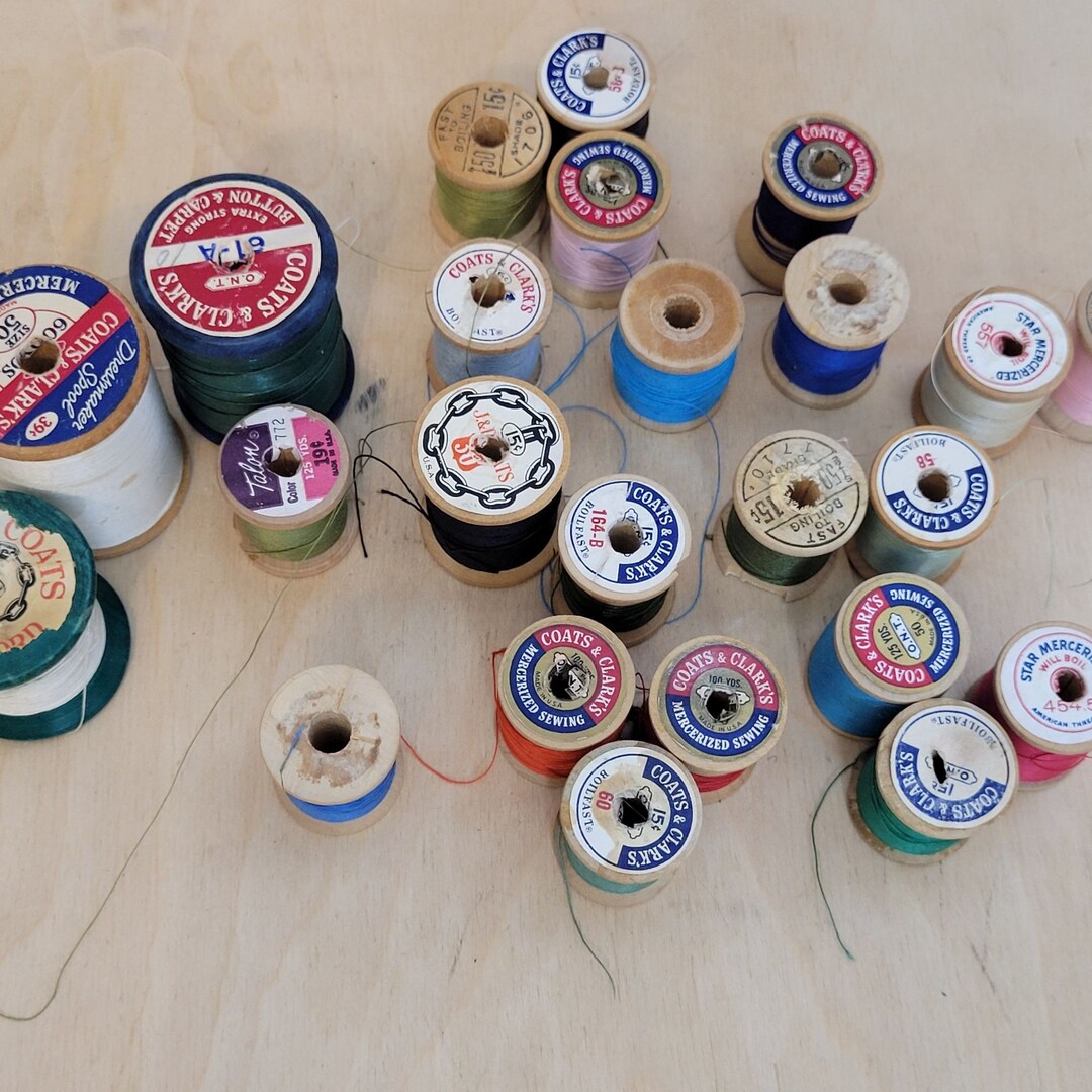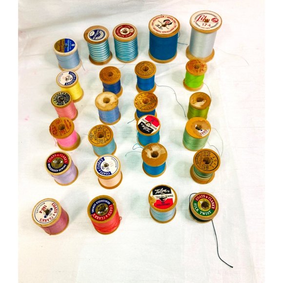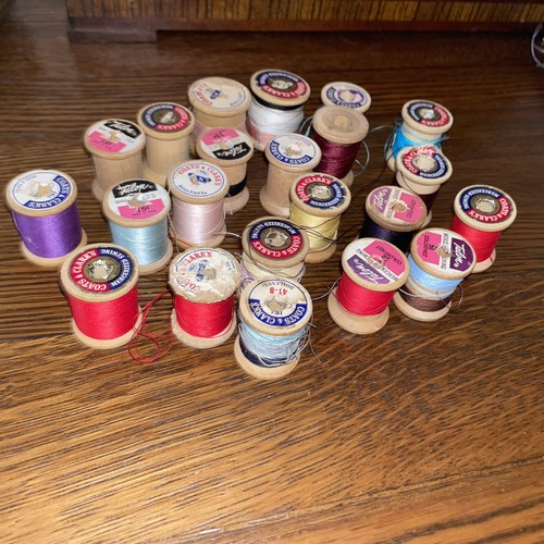 Vintage Lot of 22 Old Wooden Sewing Thread Spools Coats Clark&Talon | eBay