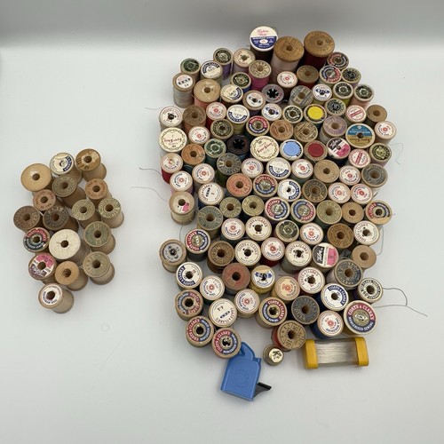 Vtg Huge Lot 100+ Wooden Thread Spools Clarks Silk Talon Star JP & More ...