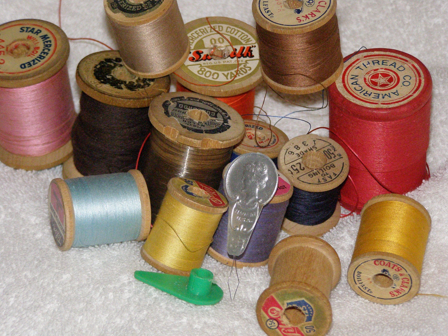 Vintage Thread Various Colors 15 Spools Thimble COATS CLARK TALON ...