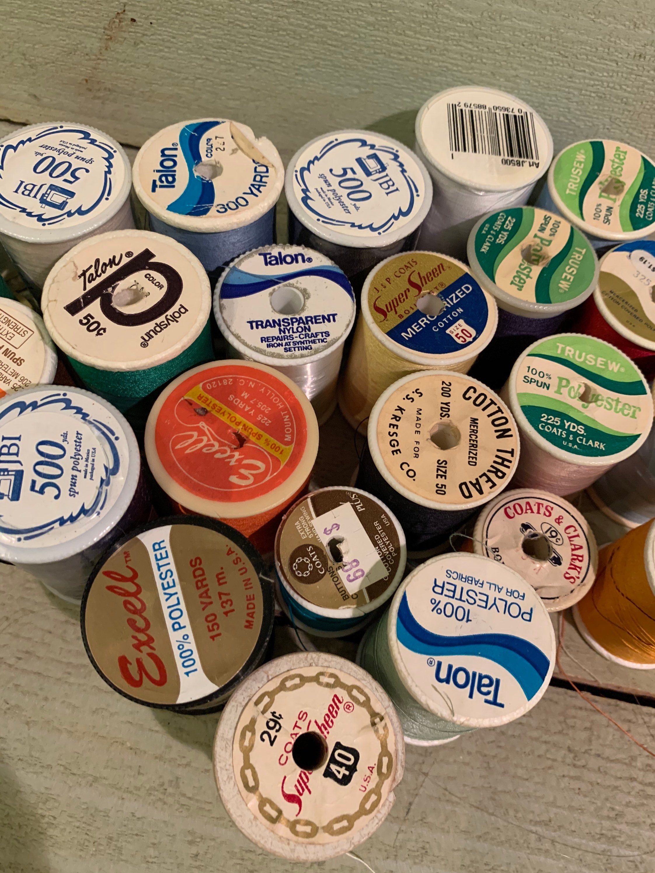 57 Spools of VINTAGE, SEWING THREAD, Clark’s, Talon, Singer J & P Coats ...