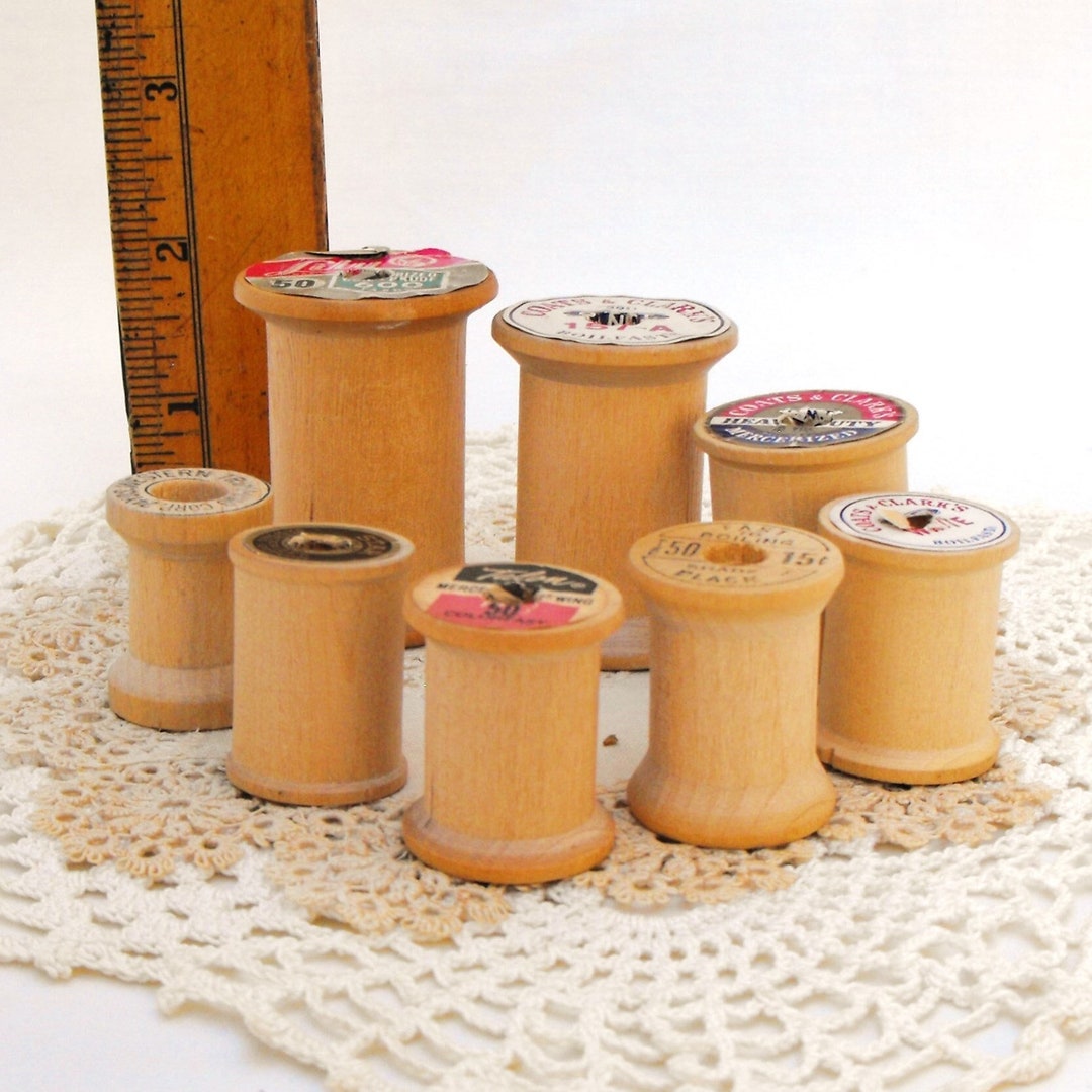 Wood Thread Spools Vintage Abggoodstuff - Etsy