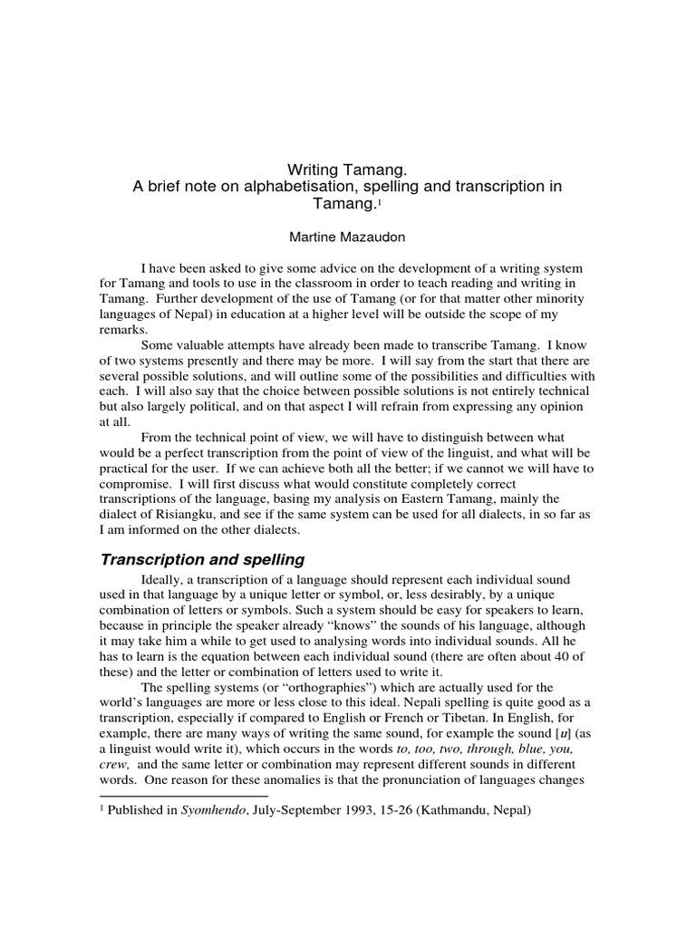 Standarization Of Tamang Language Writing System In Tamyig Tamang ...