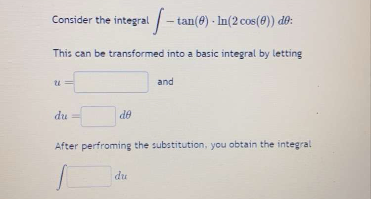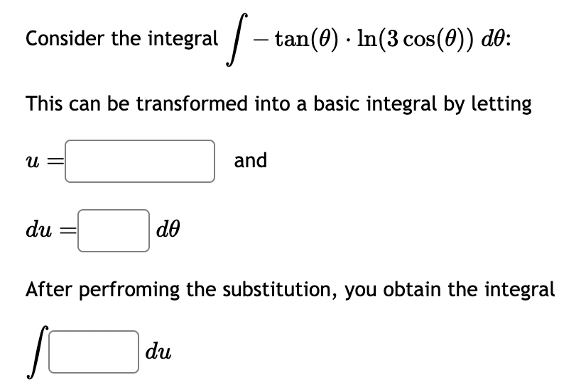 Solved Consider the integral ∫-tan(θ)*ln(3cos(θ))dθ :This | Chegg.com