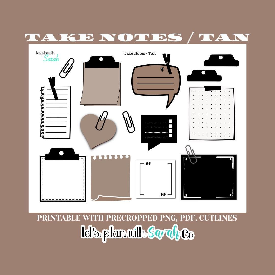 TAKE NOTES -TAN - Printable Sticky Notes Stickers for Planners ...