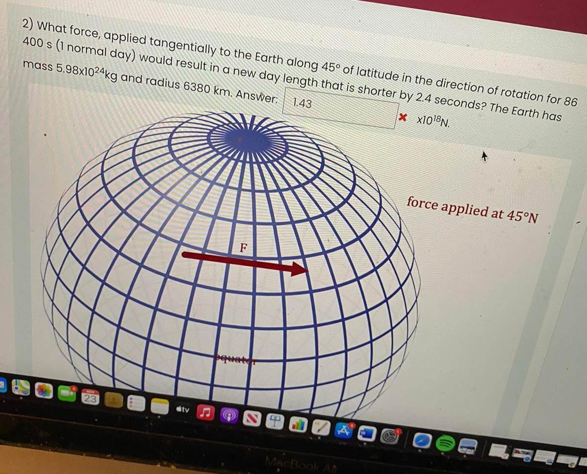 Solved 2) What force, applied tangentially to the Earth | Chegg.com
