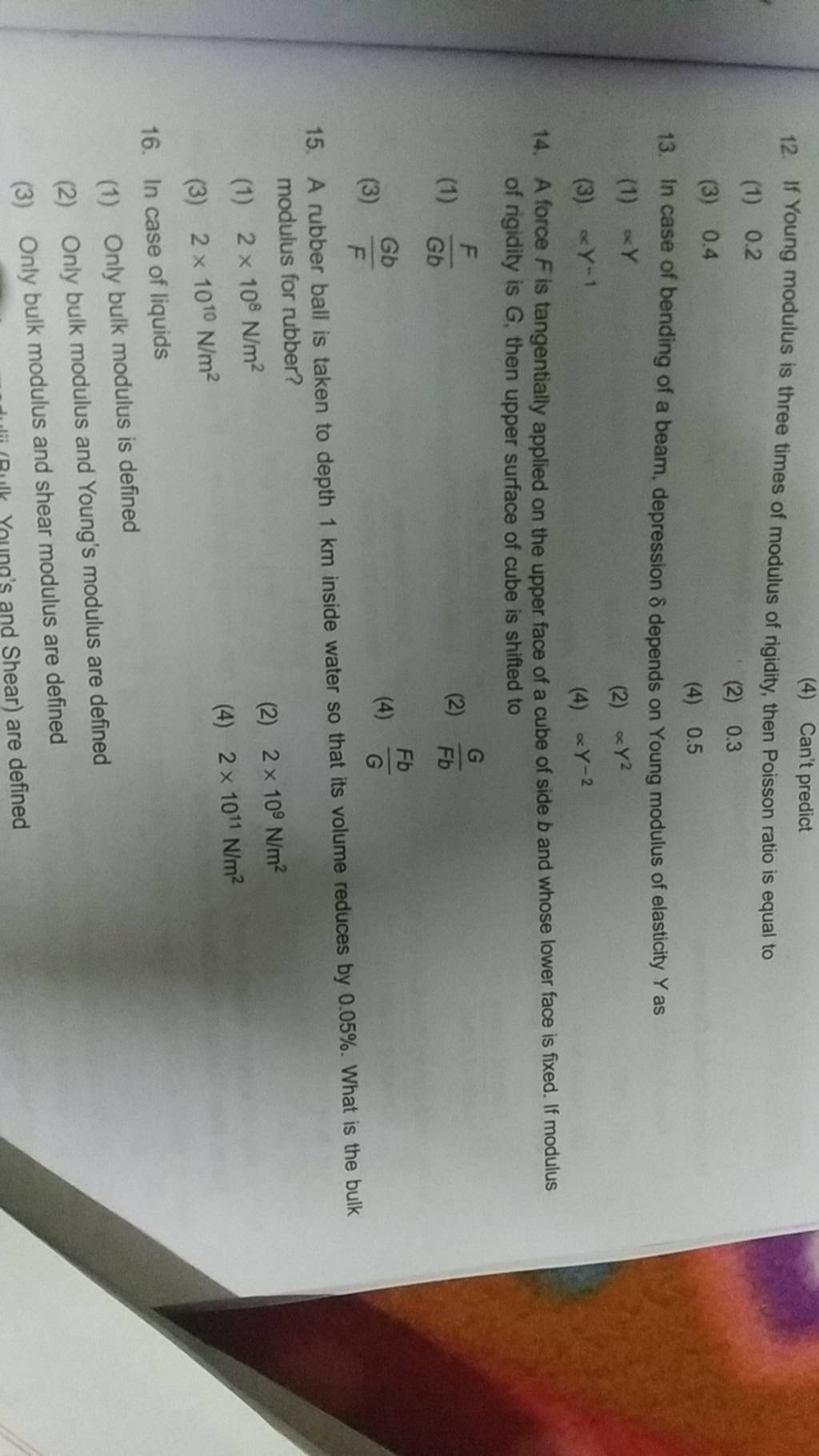 A force F is tangentially applied on the upper face of a cube of side b a..