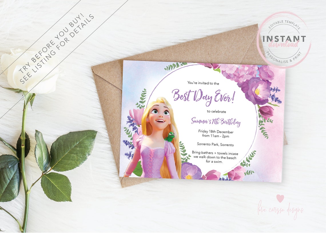 Editable Rapunzel Birthday Invitation, Princess Birthday Invitation ...