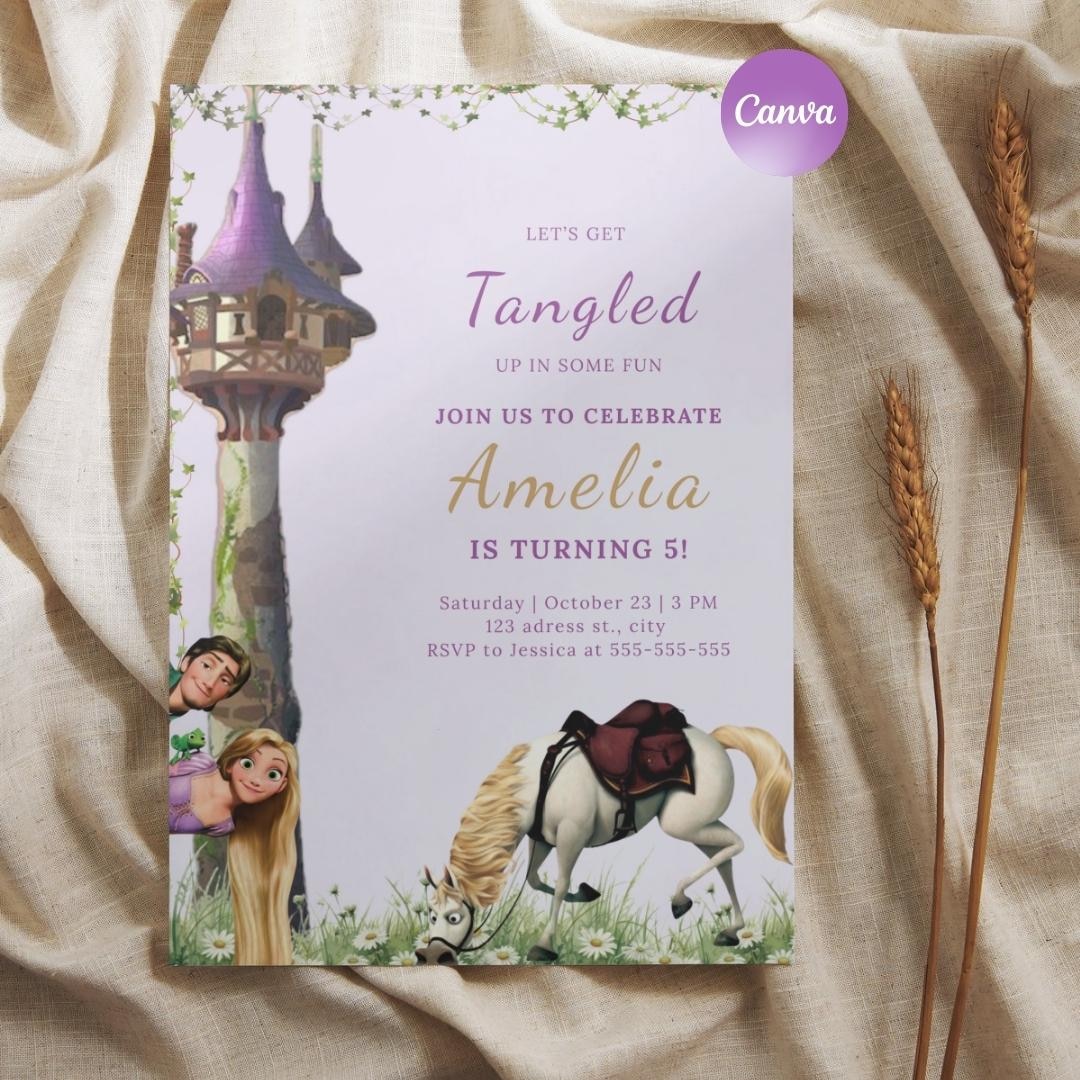 18 rapunzel tangled canva birthday invitation templates – Artofit