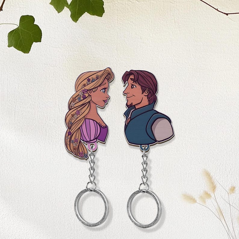 Personalized Tangled Couple Wooden Keychain, Rapunzel and Flynn Rider ...