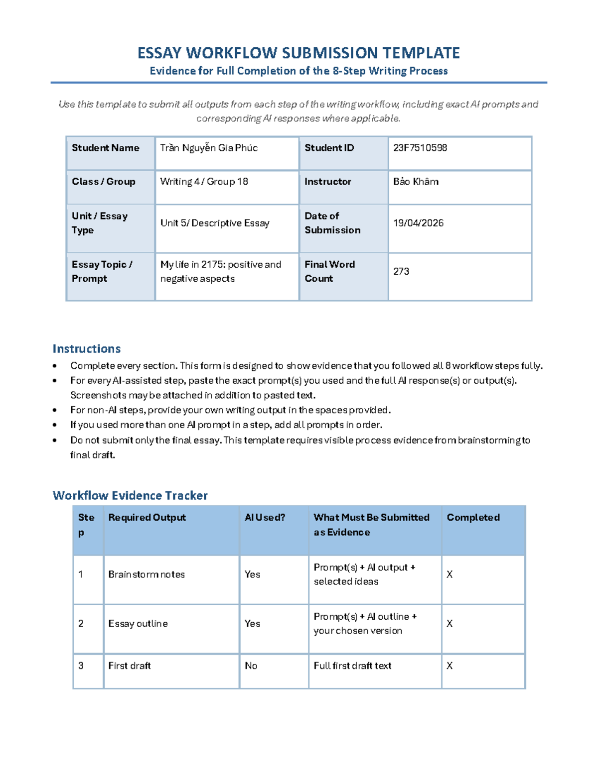 ESSAY WORKFLOW SUBMISSION TEMPLATE: My Life in 2175 - Descriptive Essay ...