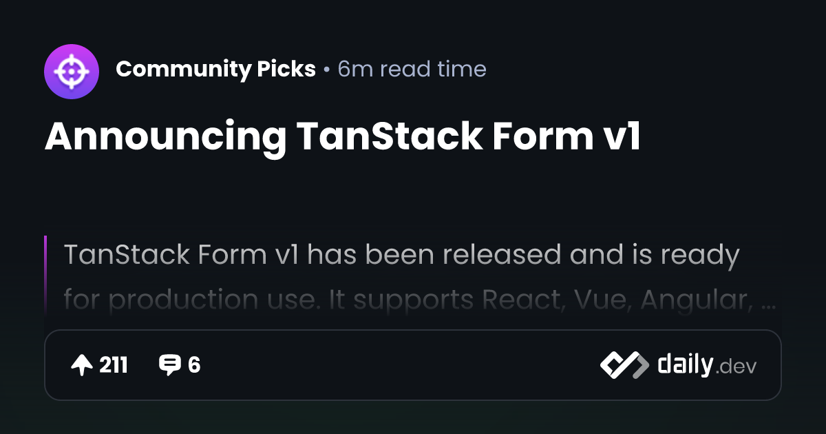 Announcing TanStack Form v1 | daily.dev