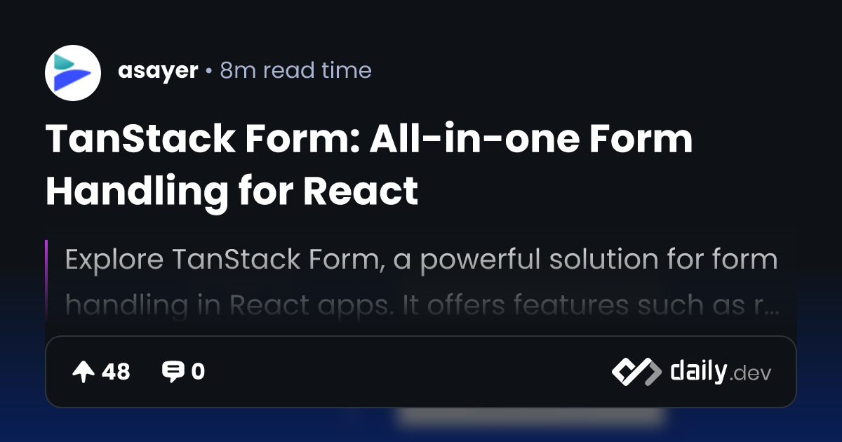 TanStack Form: All-in-one Form Handling for React | daily.dev