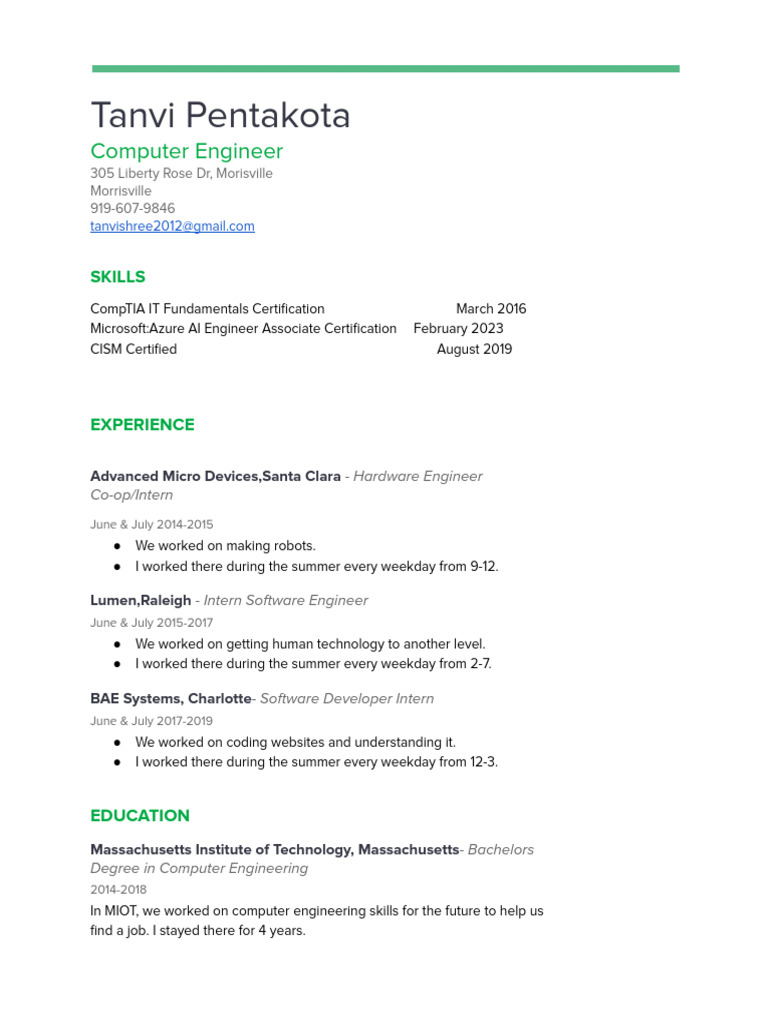 Tanvi Pentakota Computer Science Resume | PDF | Computers | Technology ...