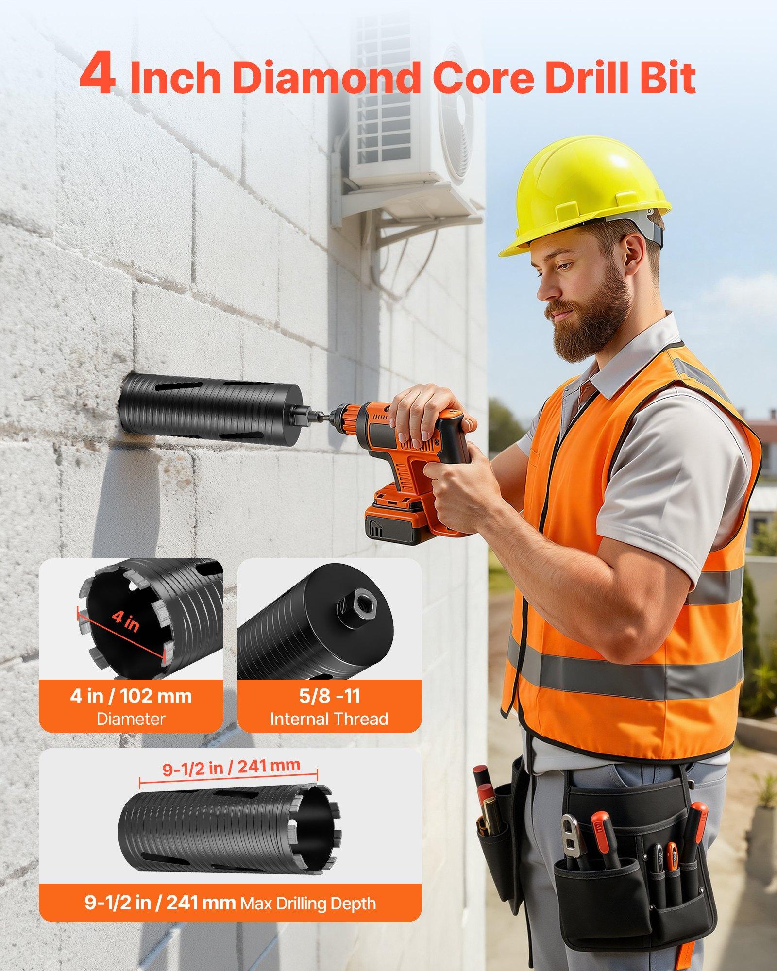 VEVOR Core Drill Bit, 4 inch Diameter, 9-1/2 inch Drilling Depth, 5/8 ...