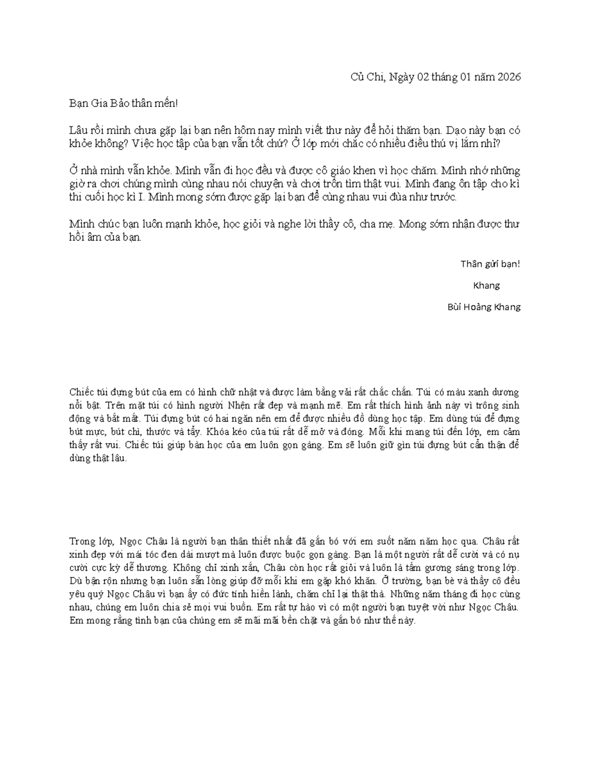 Tập làm văn CUBO: Thư gửi bạn và kỷ niệm đẹp - Studocu