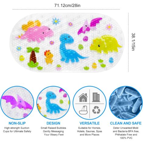 1 Tapis de bain Dinosaure 71x38cm Antidérapant Ventouse PVC Enfant