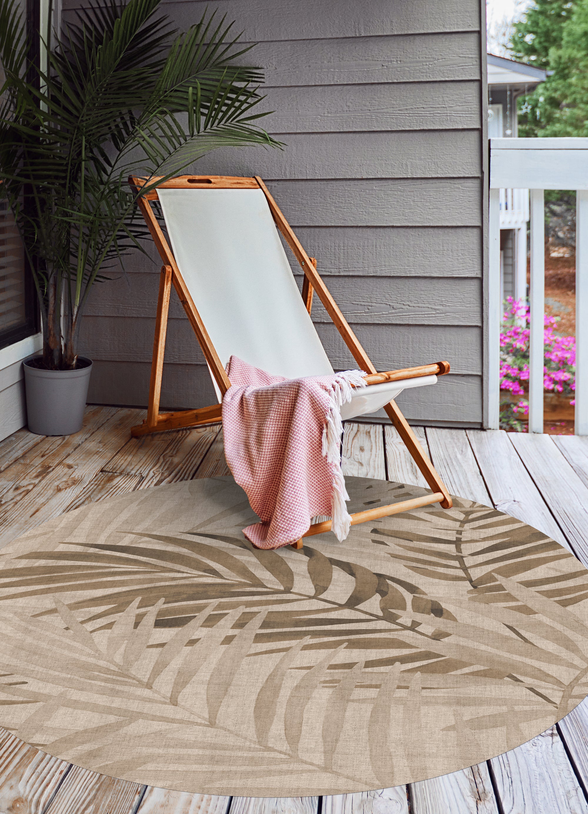 Tapis PVC intérieur/extérieur Palmiers naturels sépia [Diam] 150 cm ...