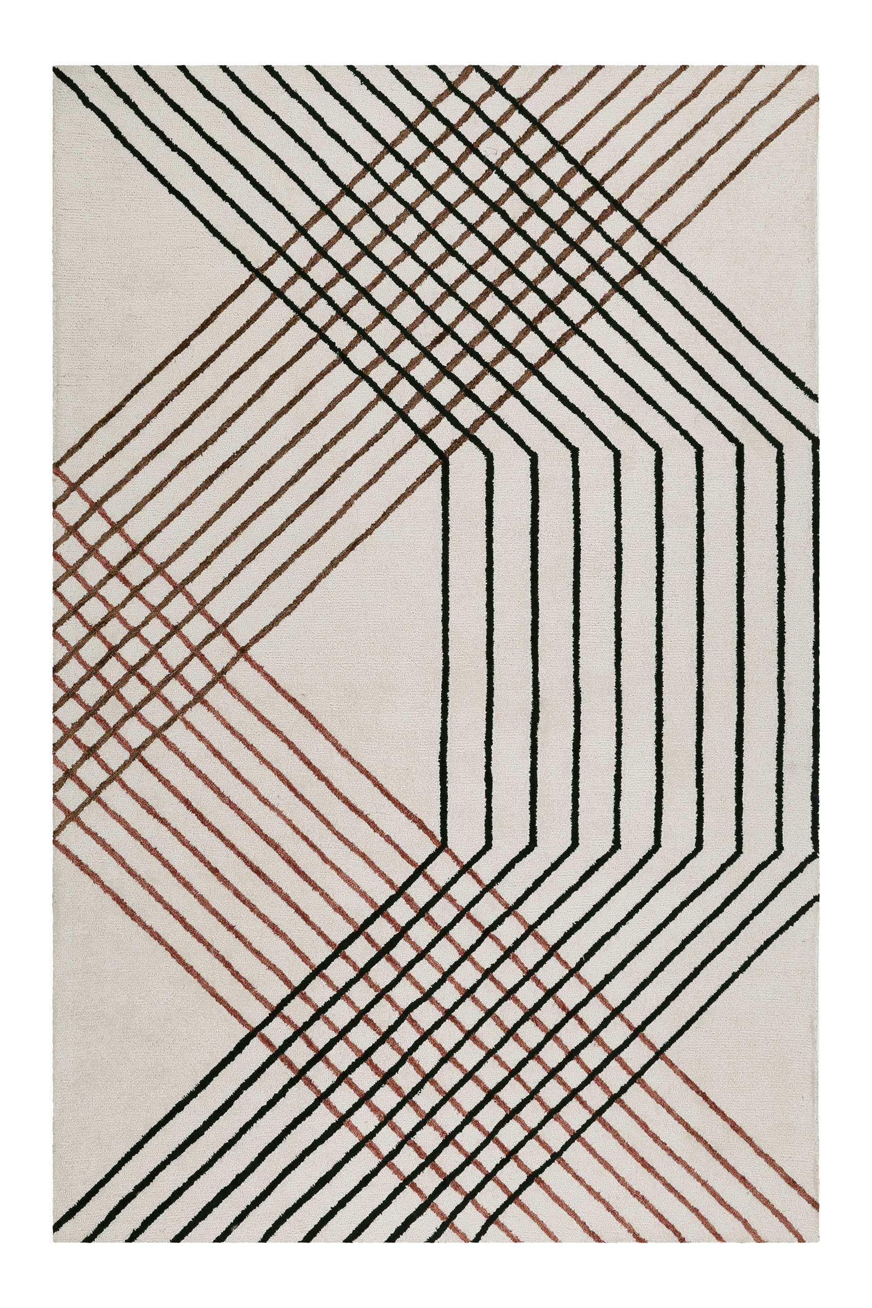 Tapis/ Rayures noires-beiges / 122x183 cm - RECTANGLE/ Créé et fabriqué ...